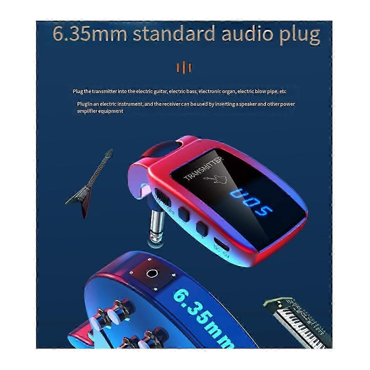 Wireless Guitar System Rechargeable Led Screen Uhf Wireless Guitar Transmitter Receiver For Electric Guitar Red