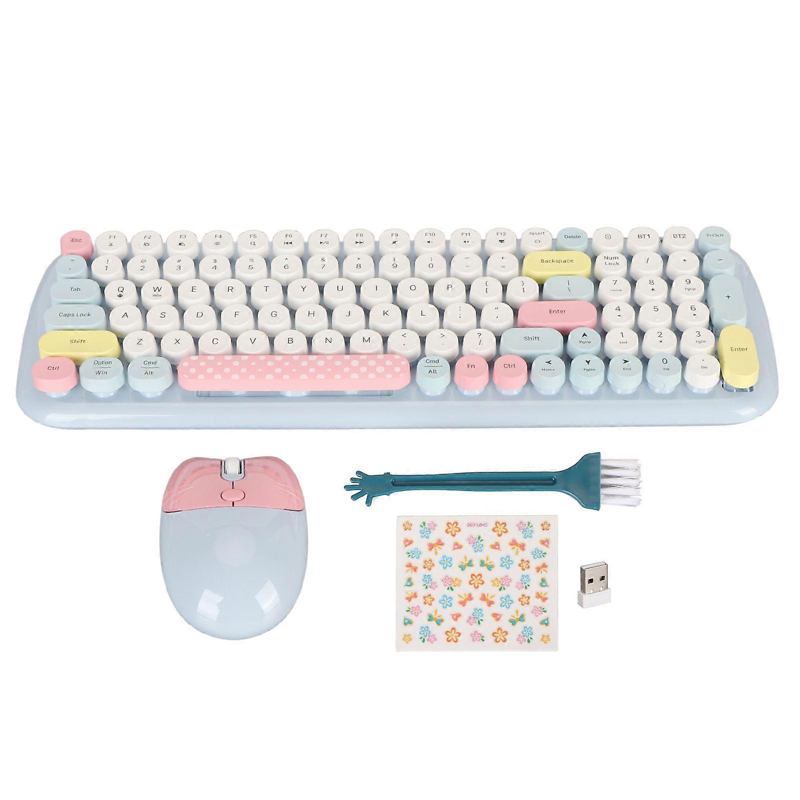 Wireless Keyboard Mouse Colorful Full Size Typewriter Keyboard Cute Optical Mouse for Windows PC Laptop Desktop Computer Blue