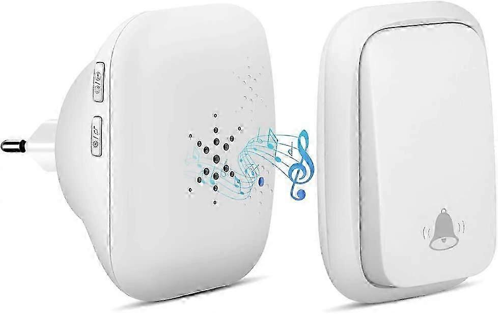 Latest RF Push Rechnology and Battery FreeThis wireless door chime is self-powered, requires no cables or batteries, protects the environment and saves you money. When the transmitter is pressed, it generates electric current itself and sends a stable signal to the receiver. Never worry about damaging the wall or doorbell again when changing batteries! 38 Ringtones & 4 Volume LevelsOur wireless stereo doorbell speaker delivers rich, clear sound. It offers a wide range of 38 ringtones and 4 volume levels (including mute) to suit your personal taste. Press and hold the volume button to return to the first ringtone (Dingdong). With memory function, the wireless bell remembers your last settings after power failure. No Crossalk and False AlarmThis small wireless doorbell has strong penetrating force and anti-interference. The range for multiple obstacles is up to 152m (500ft) and in open areas up to 305m (1000ft). It does not affect other devices in your house or neighbors and ensures that you never miss a visitor, even if you are a few rooms away or on another floor. Easy Installation Connect Simply plug the mini receiver into a plug and attach the transmitter to a wall with the Our doorbells can be used for home, apartment, school, country houses, office and more. This battery-free wireless doorbell also makes a great Christmas, birthday or anniversary gift for any home or business owner. Transmit Power: Auto -powered Doorbell receiver power supply: AC 110-240V, 50/60Hz Receiver power consumption: 0.25W Ringtones : 38 melodies Volume levels: 4 levels Transmission range: up to 152 m (in open area) Operating frequency: 433 MHz Operating temperature: -4C to 140C