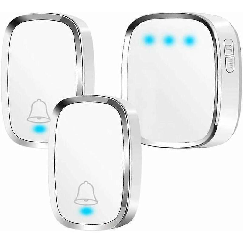 Wireless Doorbell, Waterproof Wireless Doorbell, Outdoor Door Bell with 300m Range, 2 Transmitter & 1 Receiver, White