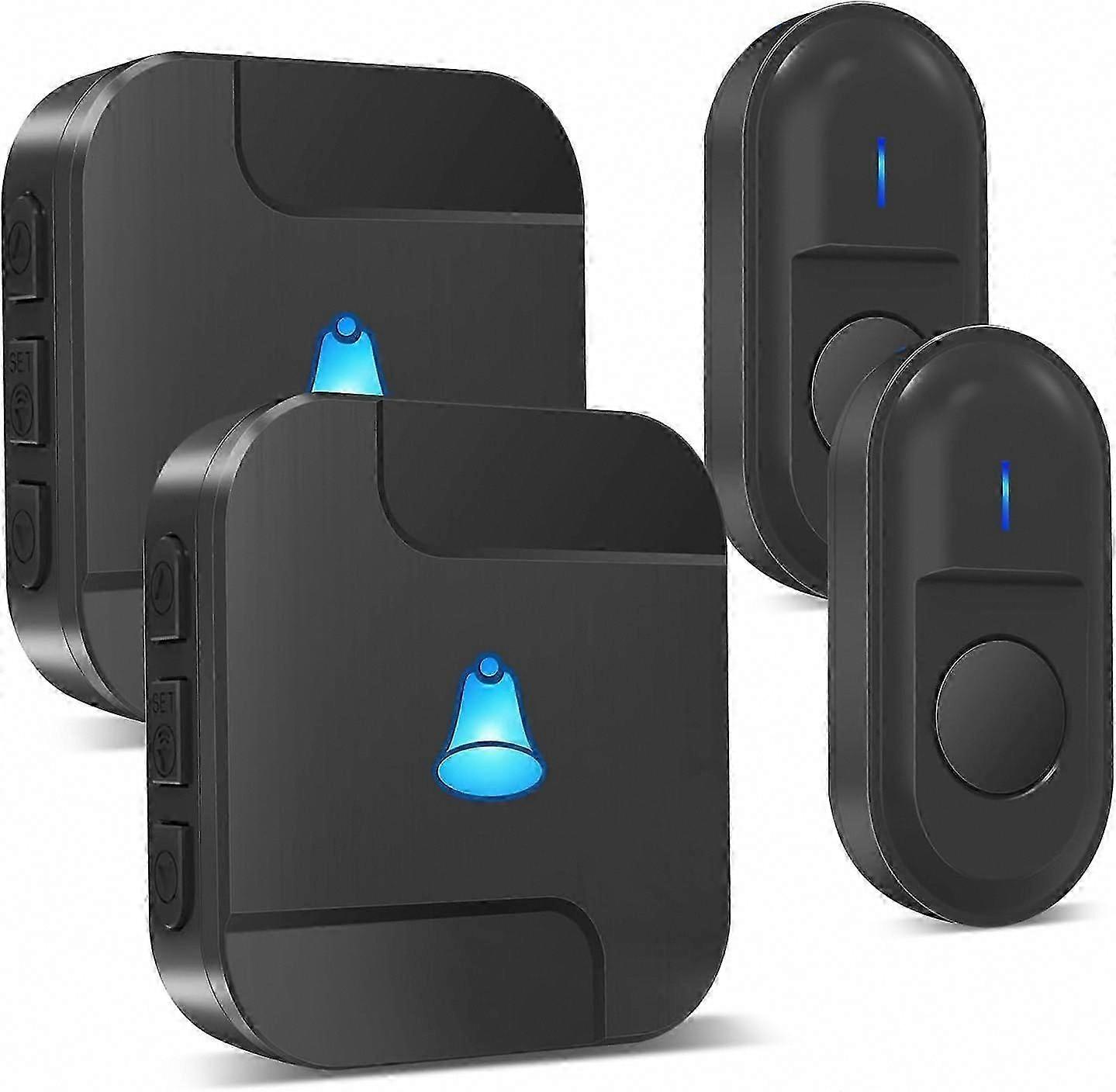 Wireless Doorbell with 2 Waterproof Buttons & 2 Receivers, IP55 Waterproof, 55 Chimes, LED Flashing