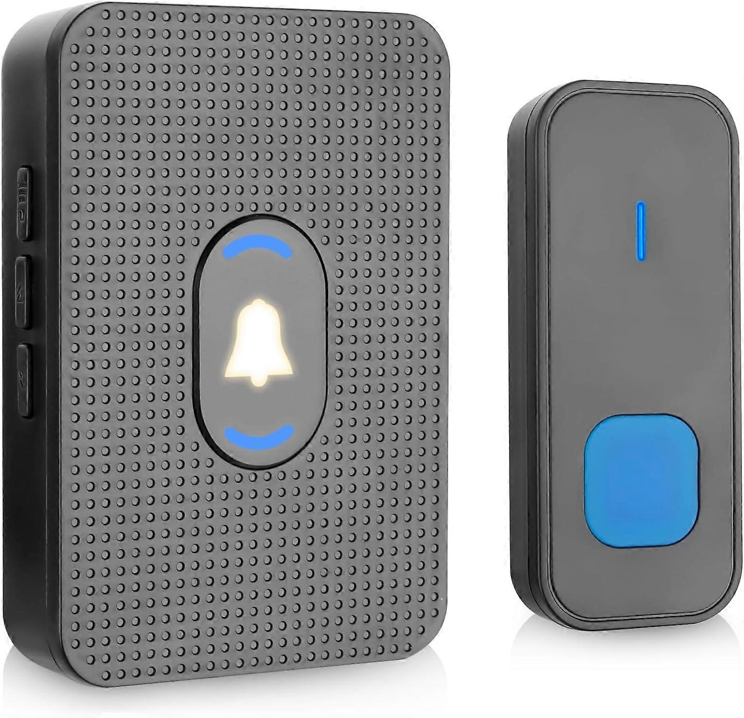 Wireless Bell, Waterproof Portable Wireless Bell Set, 300 m Range, IP55 Outdoor Waterproof Front Door Bell with Plug-in Receiver