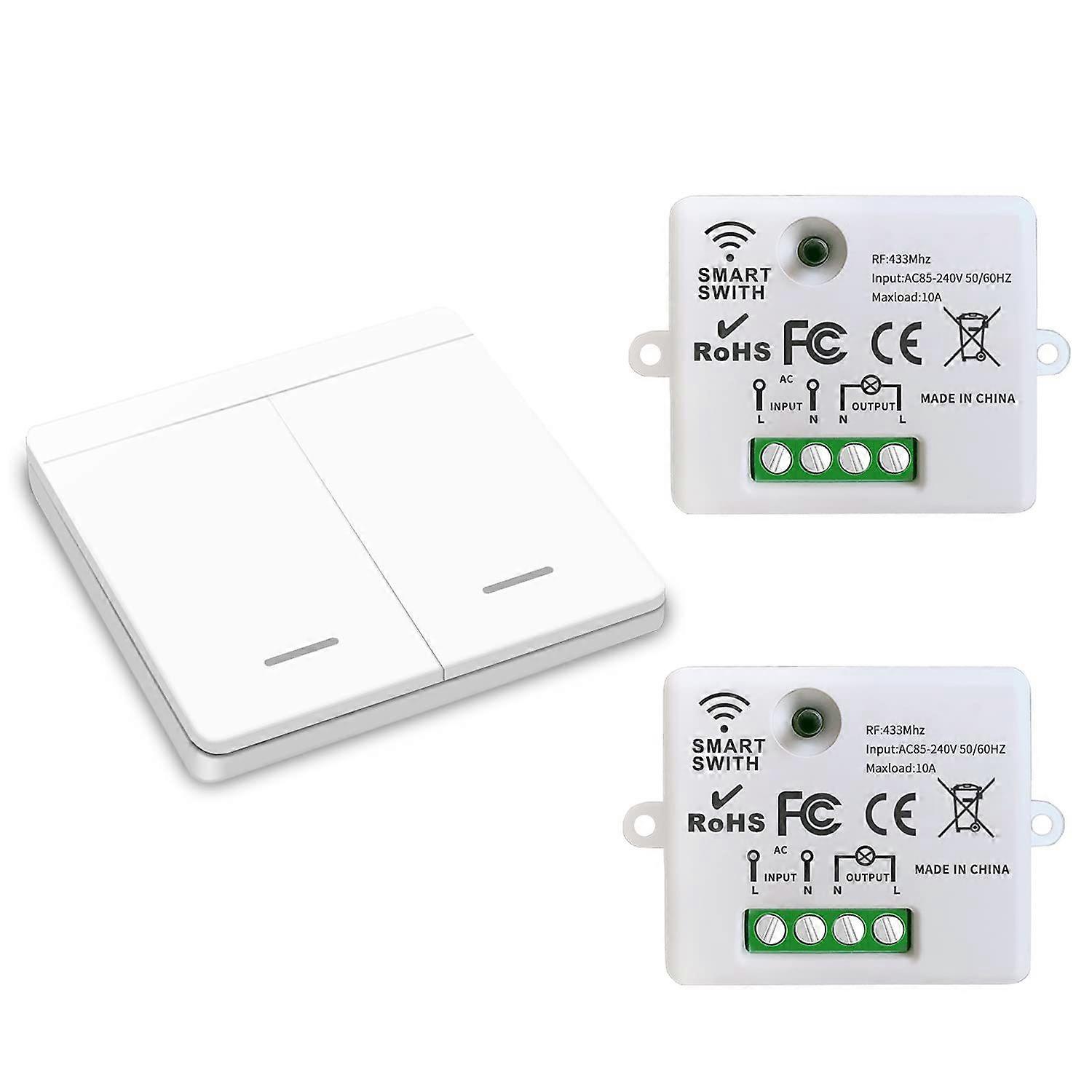 Wireless Light Switch, RF Transmitter Safety Switch and 10A Receiver Controller, Easy Installation for Lamp up to 1500W