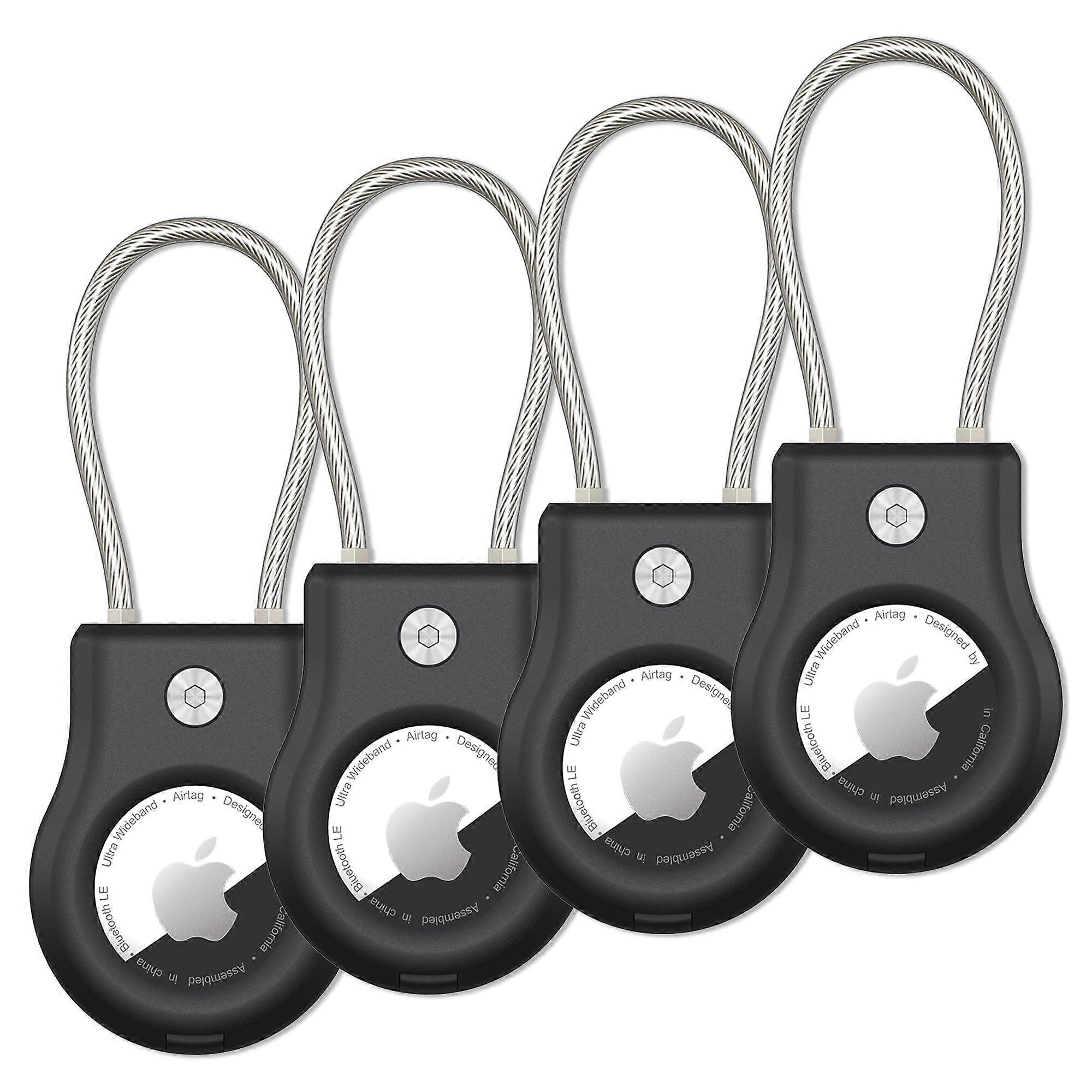 Airtag Holder with Wire Cable, Secure Lock Airtag Keychain,360°Protective Air Tag Case for Keys, Key Chain,Luggage Compatible Apple Air tag (4 Pack)
