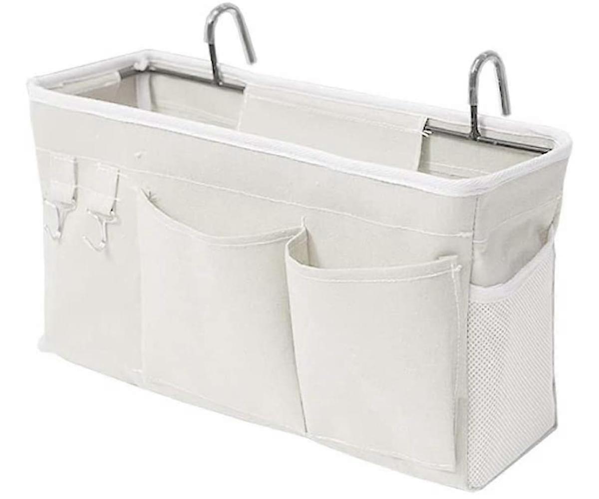 Bed Organizer Bed Bag with Wire Hooks Hanging Bag Bunk Bed Storage Bag for Book, Magazine, Mobile Phone, Headphones Bed Storage (White)