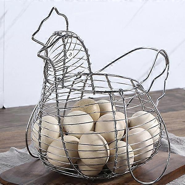 Wire metal egg baskets vintage storage chicken hen shape silver