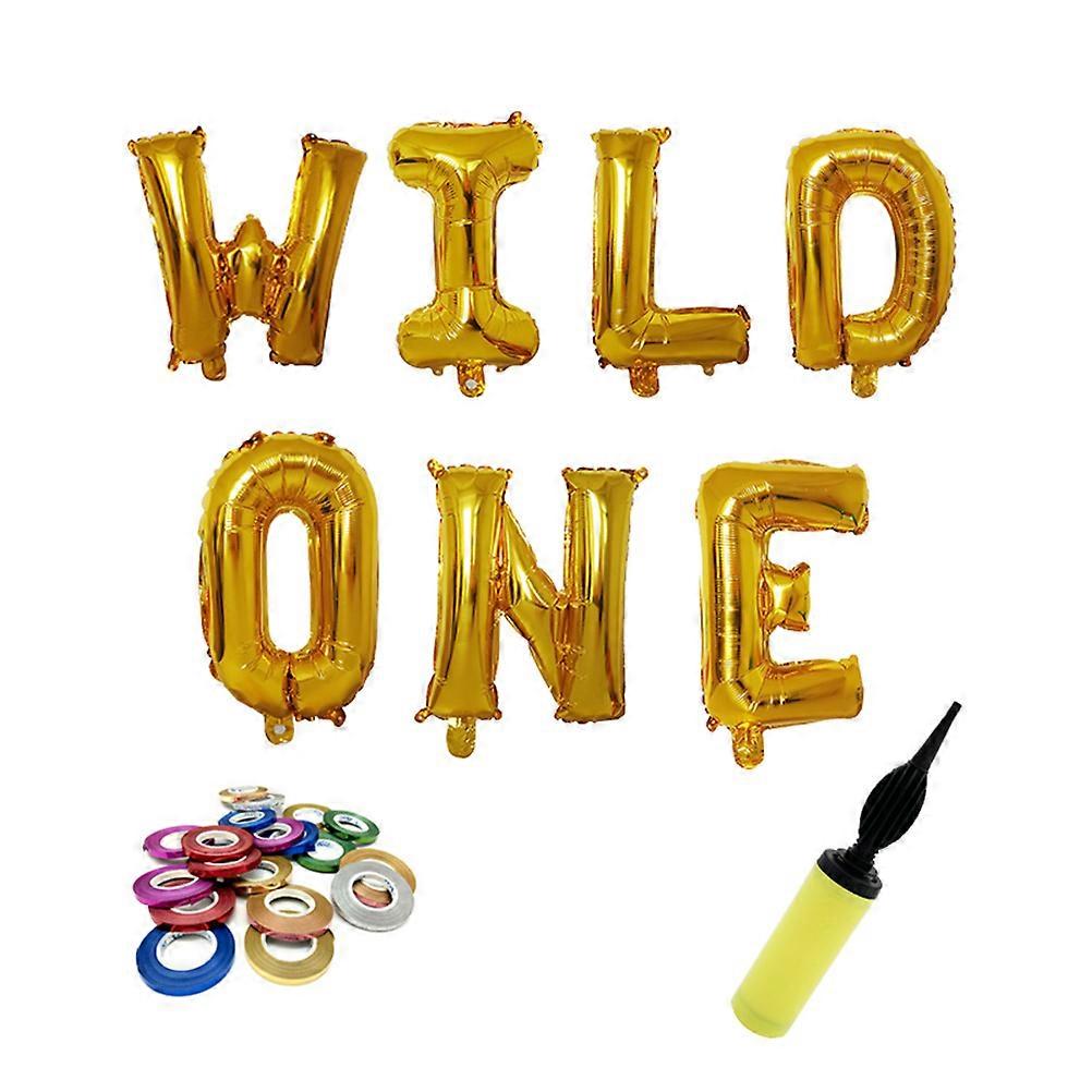 Wild One Letter Aluminum Foil Balloon Set Creative Balloons Party Supplies (Golden)