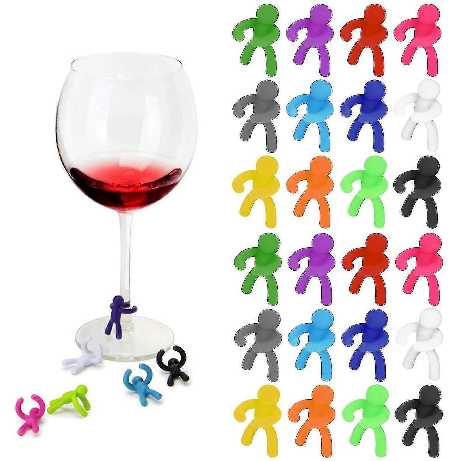 Pack of 24 Silicone Glass Markers for Wine, Cocktail & Champagne - Fun Mixed Color Drink Identification Tags for Parties