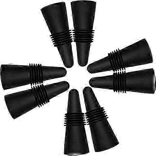 8 Reusable Silicone Wine Stoppers with Wooden Caps to Keep Wine Fresh - Black