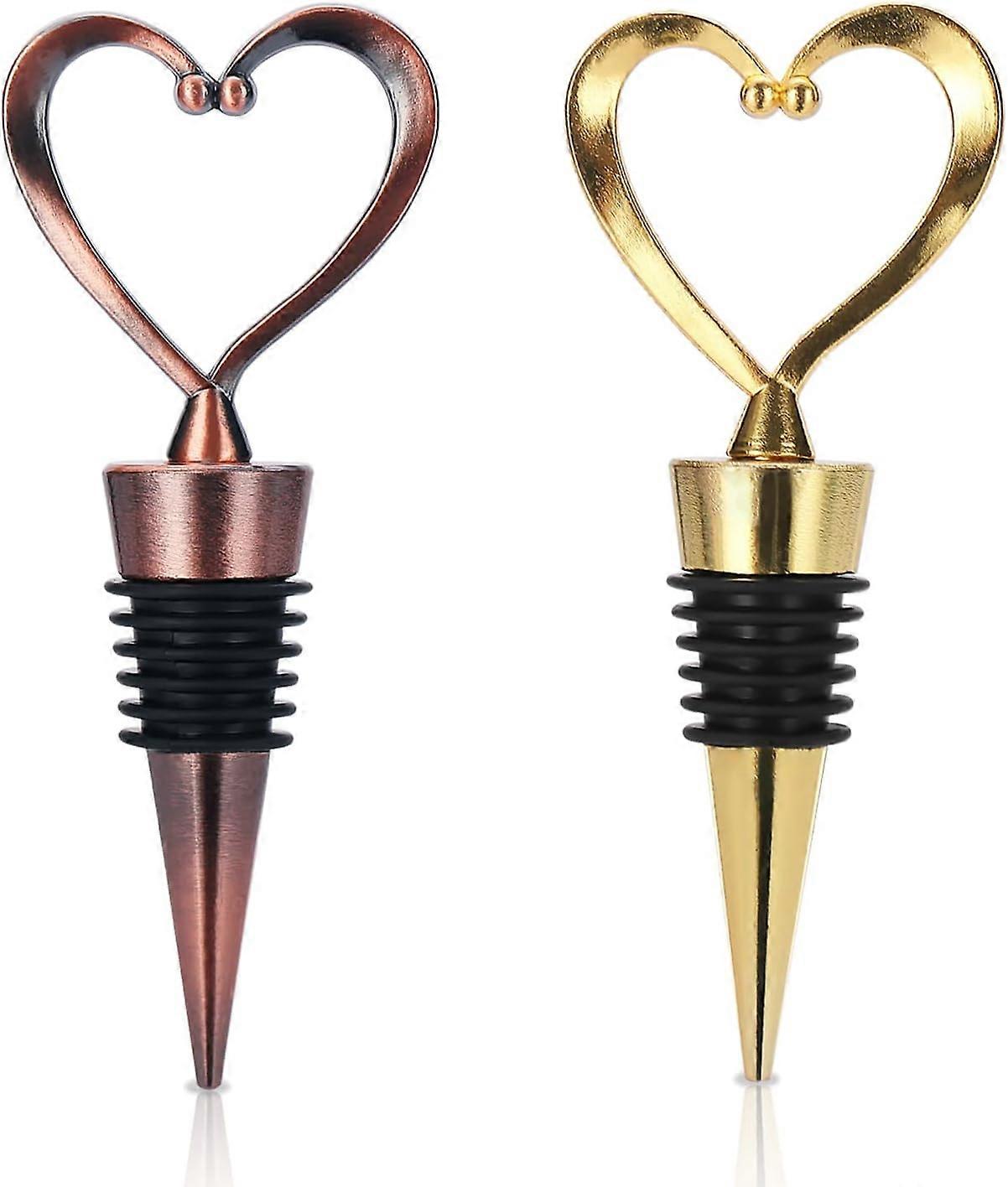 Wine Stopper Bottle Stoppers 2 Pack, Stainless Steel Reusable Love Design Heart Shape Wine Saver Silicone Wine Stopper for Gifts, Beverage Stopper for