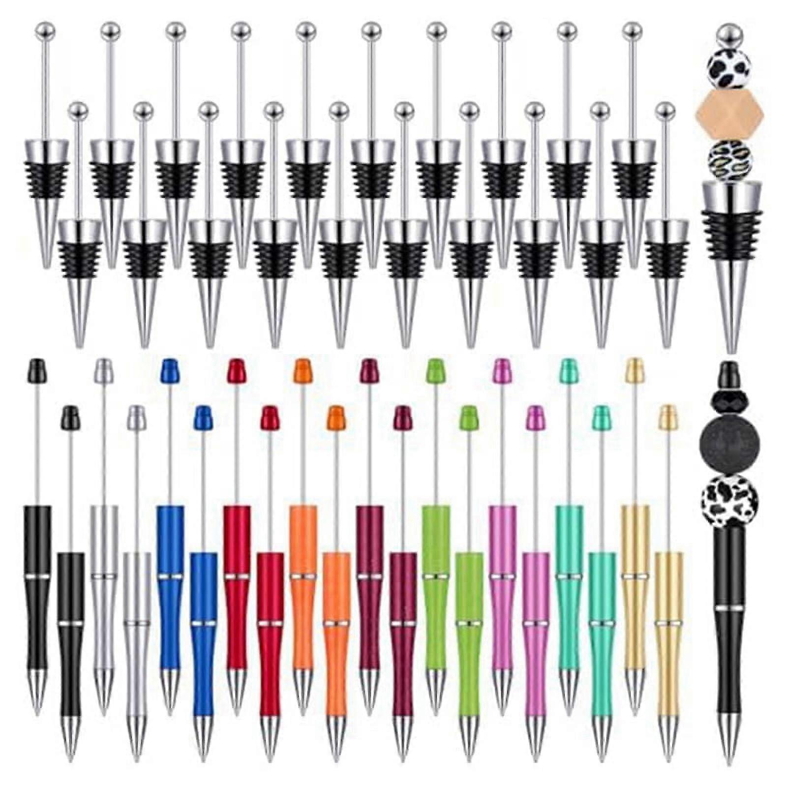 40 Pcs Beadable Wine Stoppers for Wine Bottles and Plastic Beadable Pens Kit Beaded Wine Bottle Stopper Reusable