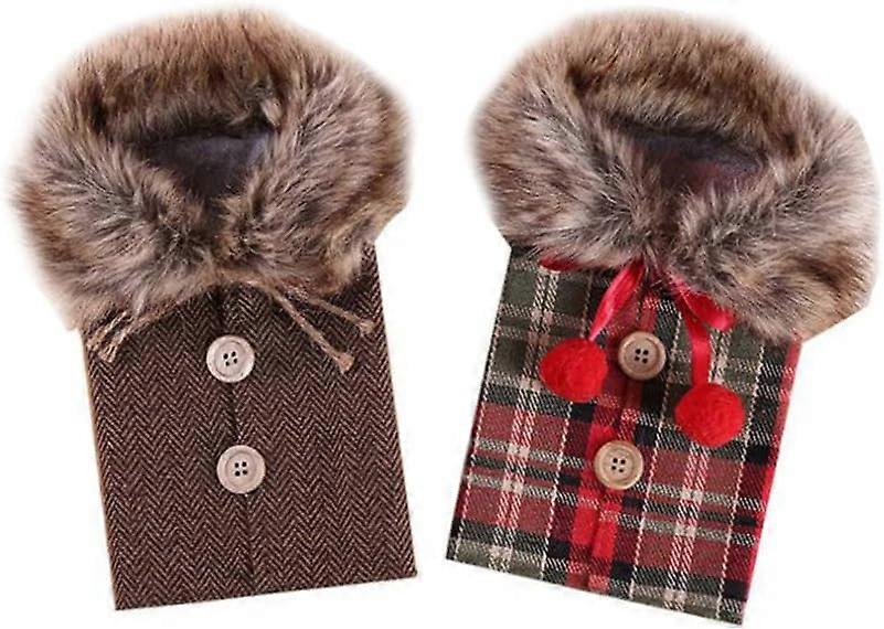 Wine Bottle Holder,Christmas Wine Bottle Cover Non-woven Plaid Wine Bottle Holder Bags Christmas Party Decorations Wine Bottle Bagsred, brown2pcs