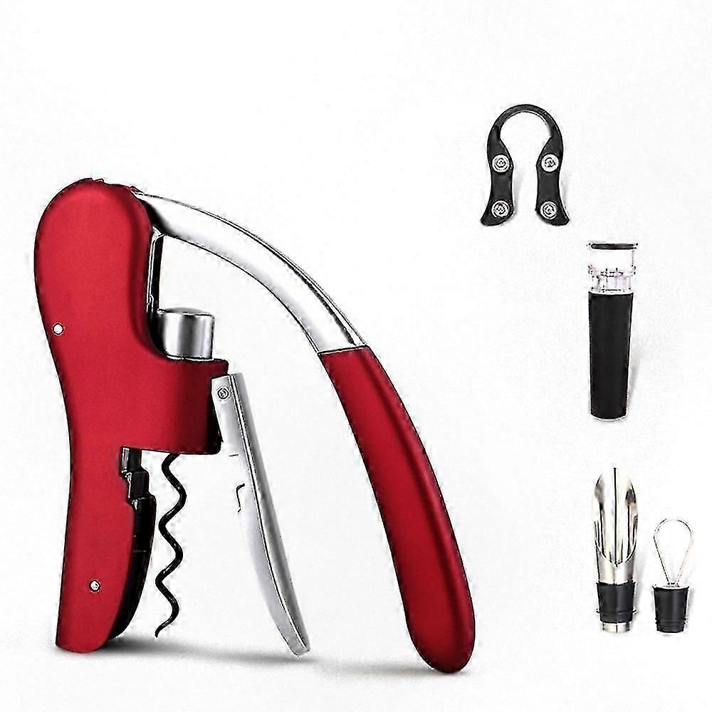 1. A quick up and down motion opens any wine bottle in just 3 seconds. 2. Extra long stainless steel handle with soft non-slip grip provides leverage for comfortable use. 3. Easily removes synthetic and natural corks. 4. Packaged in a stylish and durable box, it's a great gift for home cooks and wine lovers. 5. Includes vacuum stopper, wine pourer, and paper cutter.