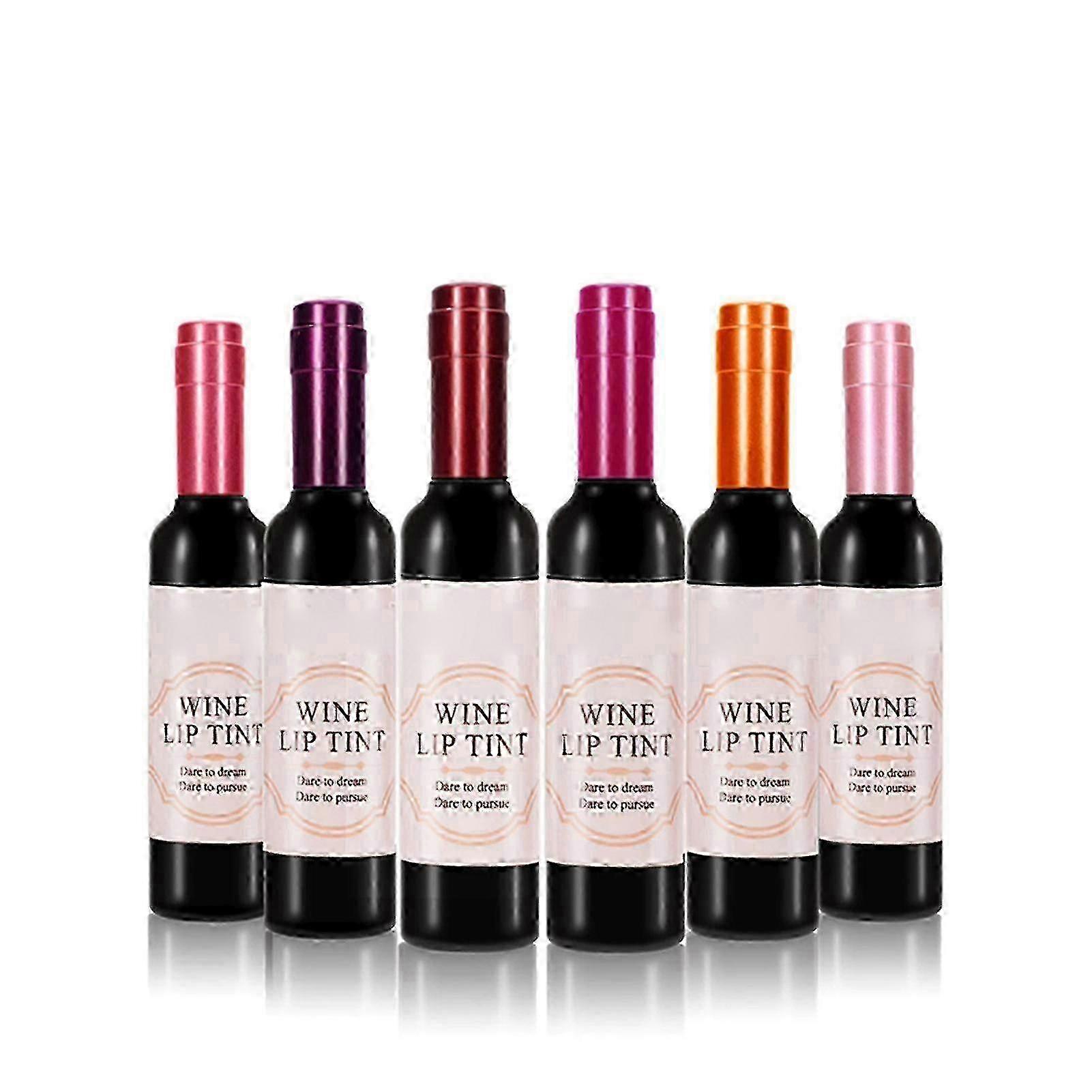 Wine Lip Tint Wine Lipgloss Waterproof Bottle Style Set Long-Lasting Not Easy to Fade Lipstick Gift for Women Girls 6PCS