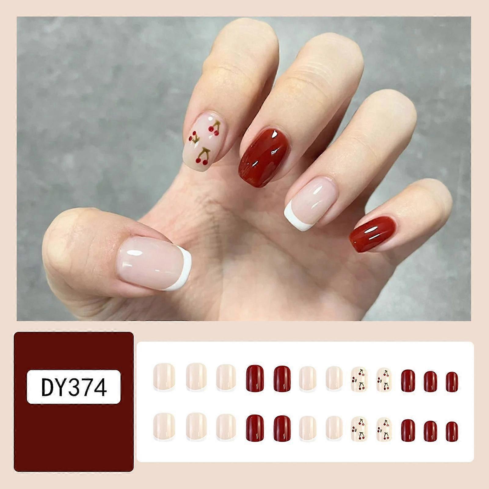 Wine Red Short False Nails Non-toxic And Anti-allergic Fake Nails Jelly Glue Model