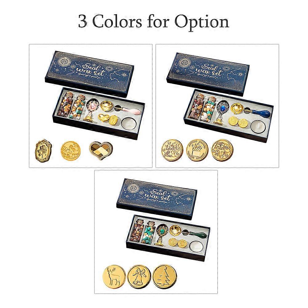 Wax Seal Stamp Kit with 3pcs Seal Stamp and Bottle of Wax Beads Spoon/Candle for Christmas Vintage Envelopes Letters Mailing Crafts Gift for Envelo