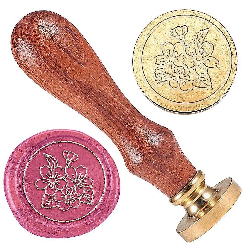 Wax Seal Stamp Set Golden Plated Sealing Wax Stamp Solid Brass Head with Retro Wood Handle for Envelopes Invitations Gift Card Flower 83x22mm Head: 7.