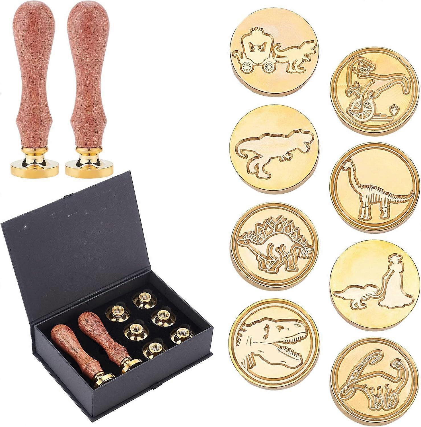 Wax Seal Stamp Heads Set 8pcs Vintage Sealing Wax Stamps with 2pcs Wood Handles 25mm Round Removable Brass Head Sealing Stamp for Wedding Invitation-D
