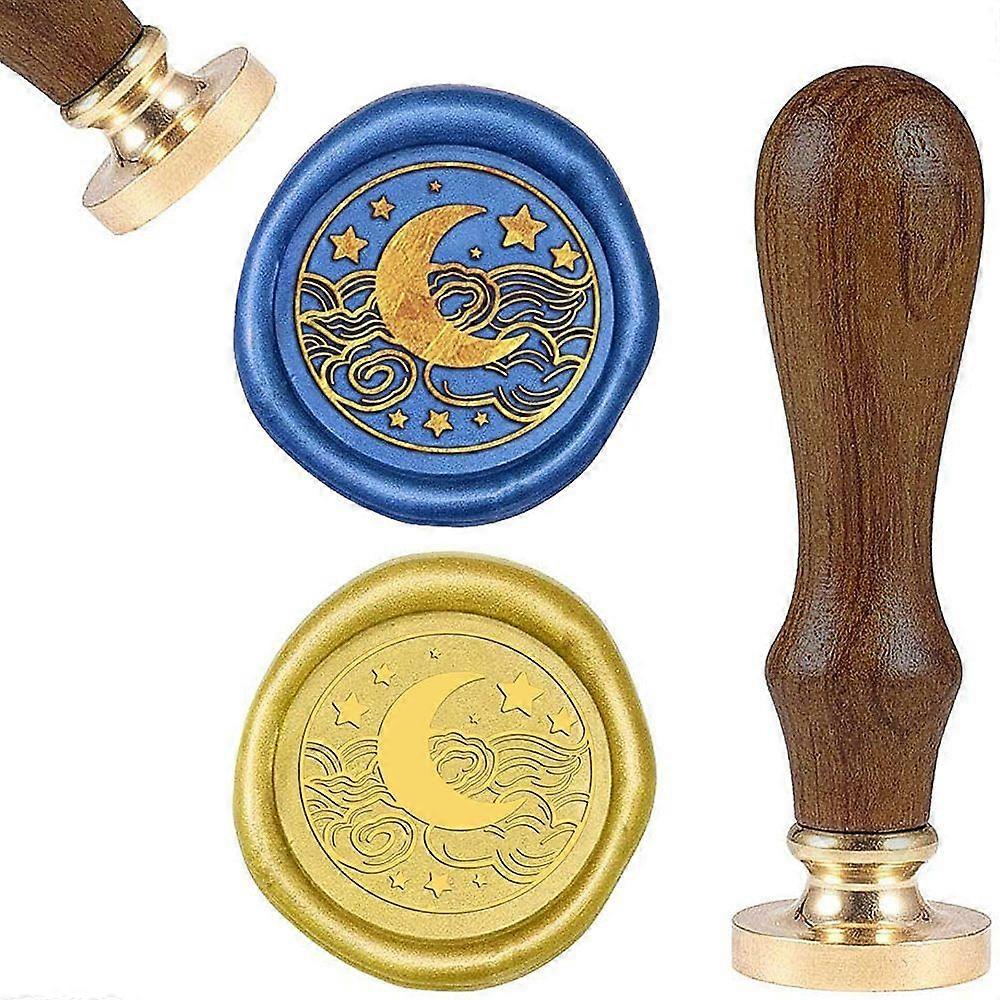 Wax Seal Stamp Moon Retro Sealing Wax Stamp with Removable Brass Head and Wooden Handle for Wedding Invitation Envelope Card Package Decoration