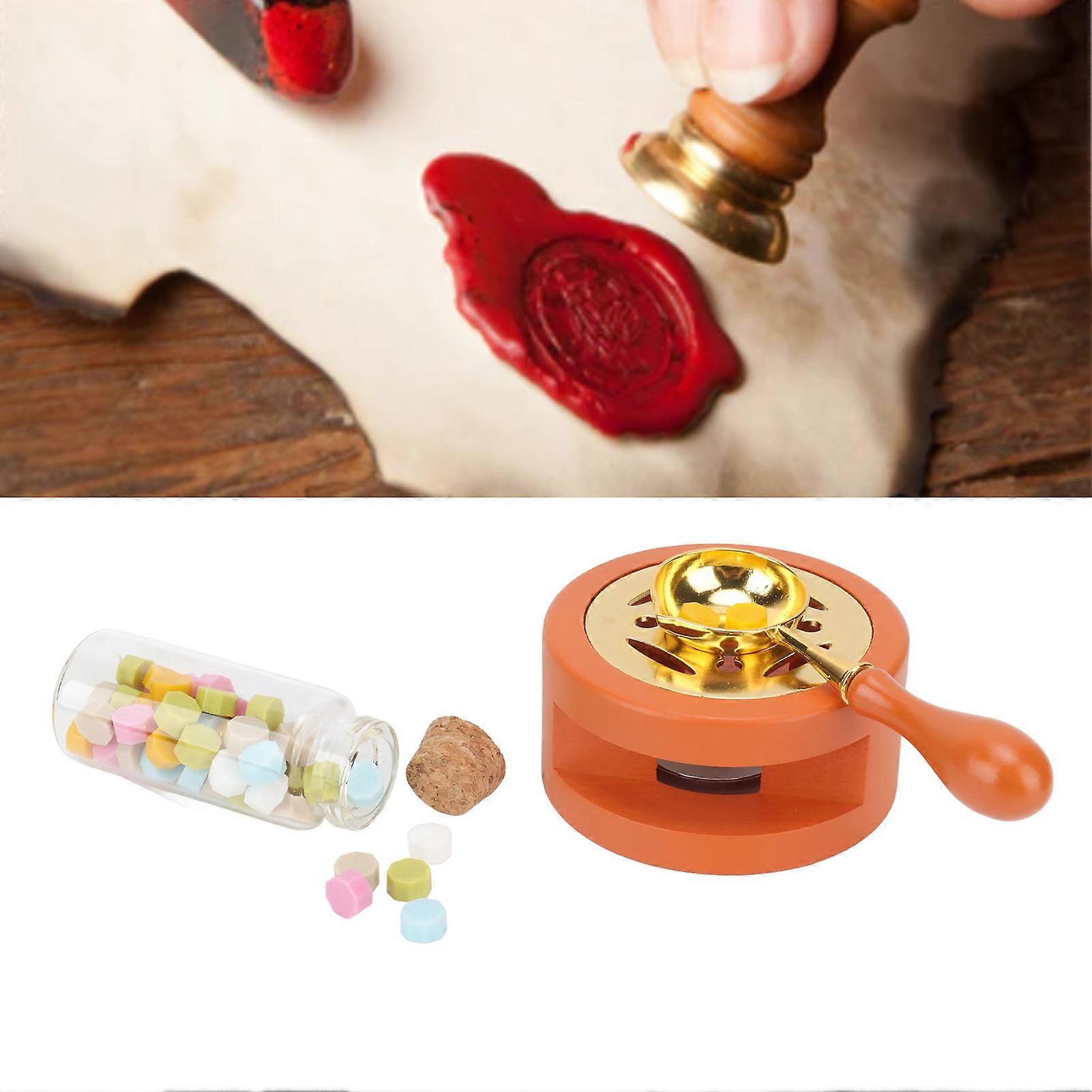 Wax Stamp Kit with 10 Small Round Wax Fire Lacquer Stove Stamp Handle Wood Metal Sealing Stamp Kit for Envelope Invitation