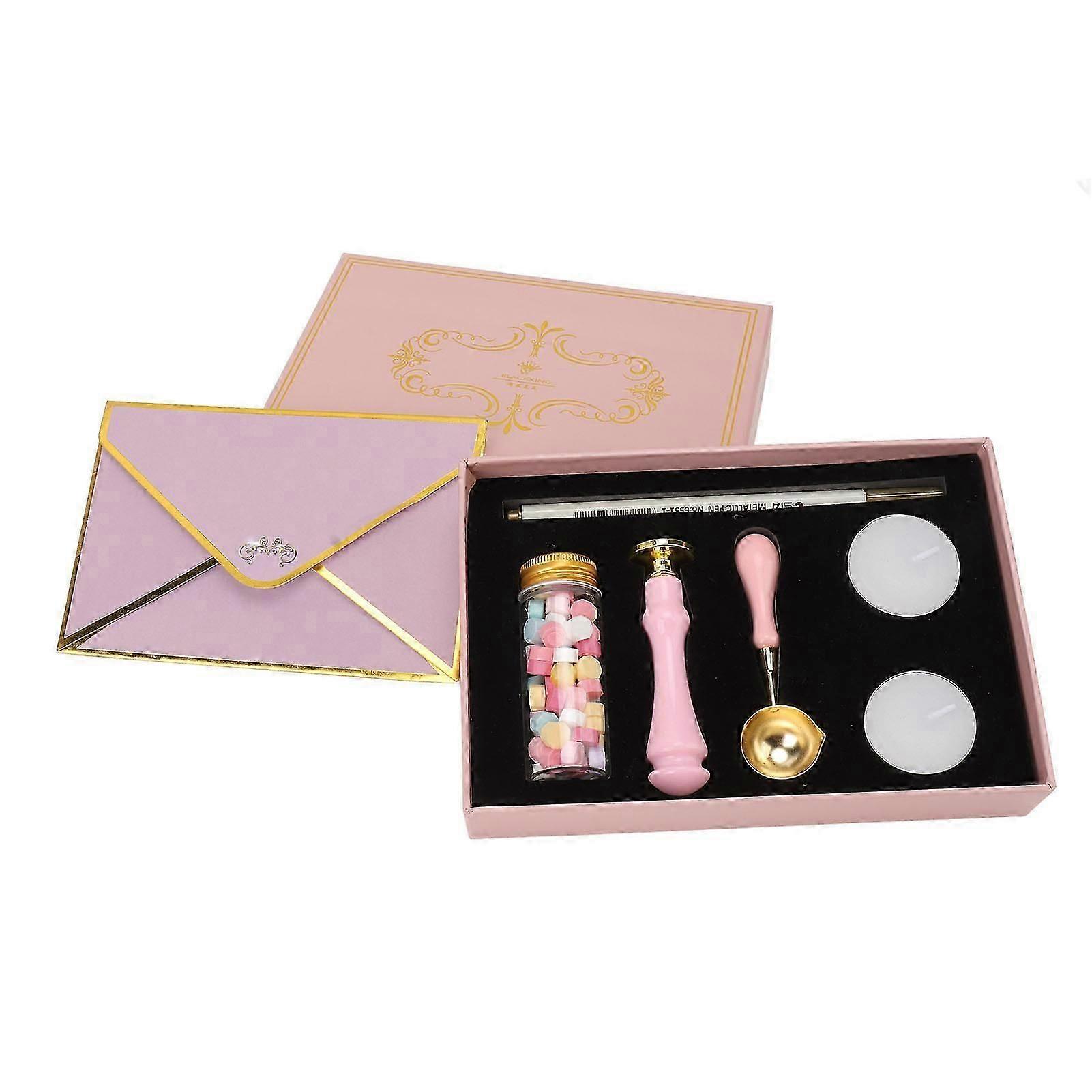 Wax Stamp Kit Retro European Style DIY Craft Stamp Hand Account Envelopes Fire Paint Sealing Wax Kit Decoration Pink