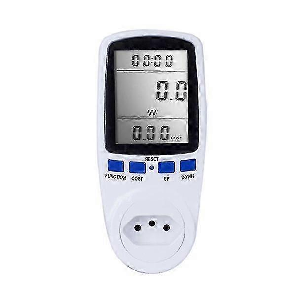 It is a basic multifunction instrument that can display various physical parameters such as WHz, time, cost in real time. And the meter uses LCD as display, shows data more comprehensive, clear and easy to observe. Features: LCD screen, WHz, time, cost, simultaneously displayed, comprehensive and clear. The set watt display [Watt) is 0W-9999W.Time display range: 0s-9999 days, voltage display range: 0V-9999V, current display [Amperes): 0.000A-16,000A. Price display range: 0.00 COST / KWH to 99.99 COST / KWH. Total KWh and cost display: 0.000KWh-9999KWh, 0.00COST-9999KOST. Specifications: Name: power : plastic Color: whitePlug: EU-Plug, AU-Plug . A-16,000AFrequency display: 0Hz-9999HzMin watt 09.9Wim screen-0 max. -range: 0.0W-9999WPrice display range: 0.00COST/KWH-99.99COST/KWHTTotal KWh and cost display: 0.000KWh-9999KWh,0.00COST-9999COSTItem size: 160 * 72 * 41mm / 6.30 * 2.813 * 2.813 * 0.813 * 0.0 gram size: 0 ounce: 0 ounce: 0 ounce size: 0 ounce * 85 * 60mm / 7.09 * 3.35 * 2.36 inch Package weight: 210g / 7.41ounce Packing list: 1 * Power
