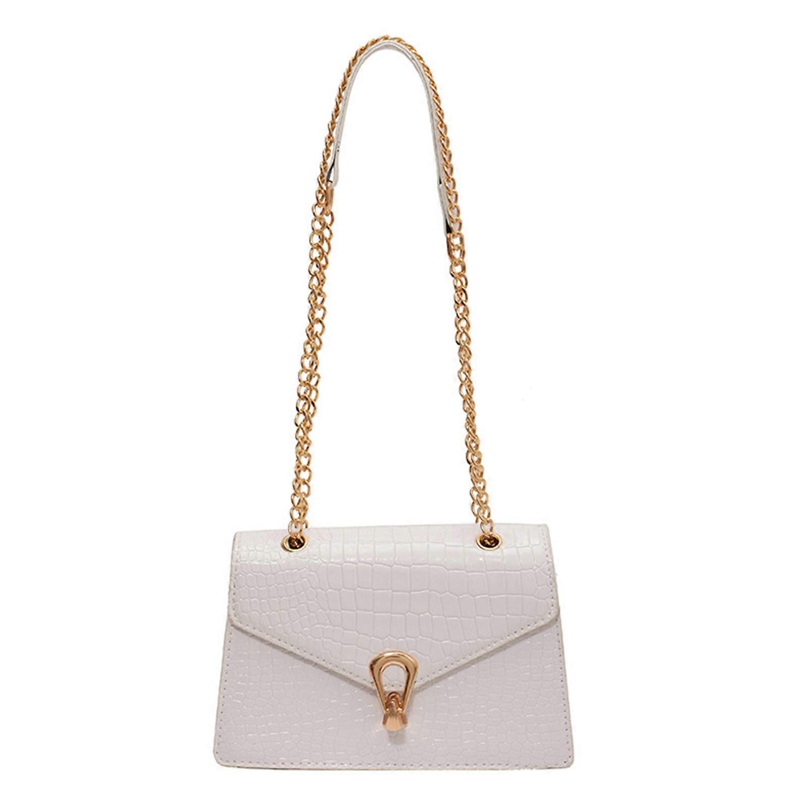 Alligator Print Crossbody Bag Shoulder Bag for Girl Women Solid Color Travel Bags Fashion Leisure Trendy Mini Square Bag White