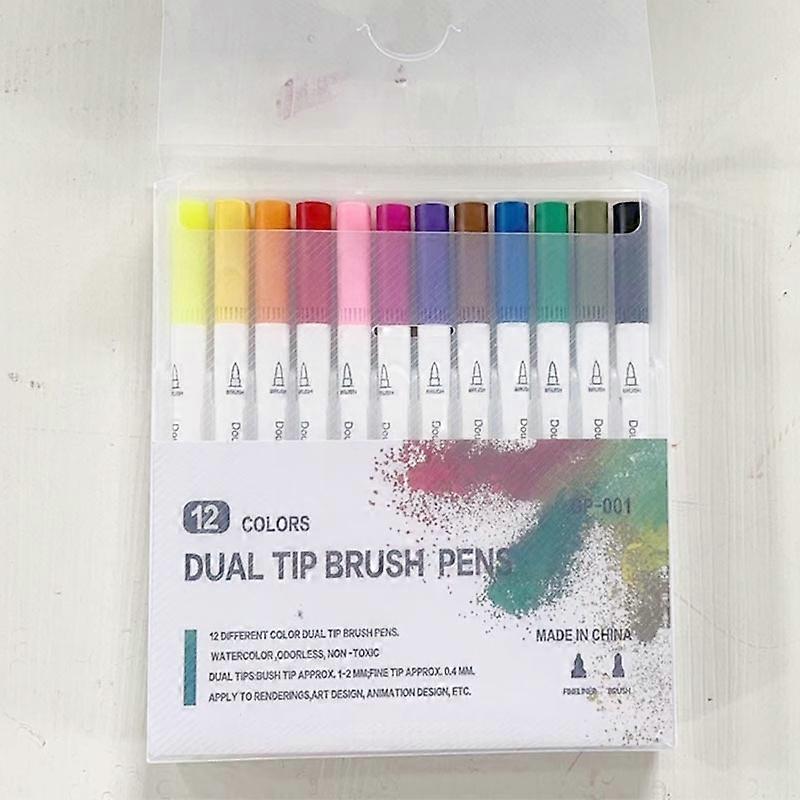 One-Piece Set Water-Based Double Head Marker Pen Set of 12 Colors Soft Head Fine Art Brush White