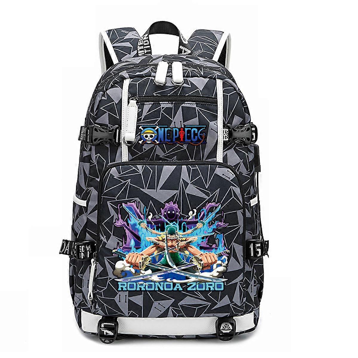 One Piece Zoro Backpack Luminous School Bag Nylon Geometric Daypack with USB Charging Port