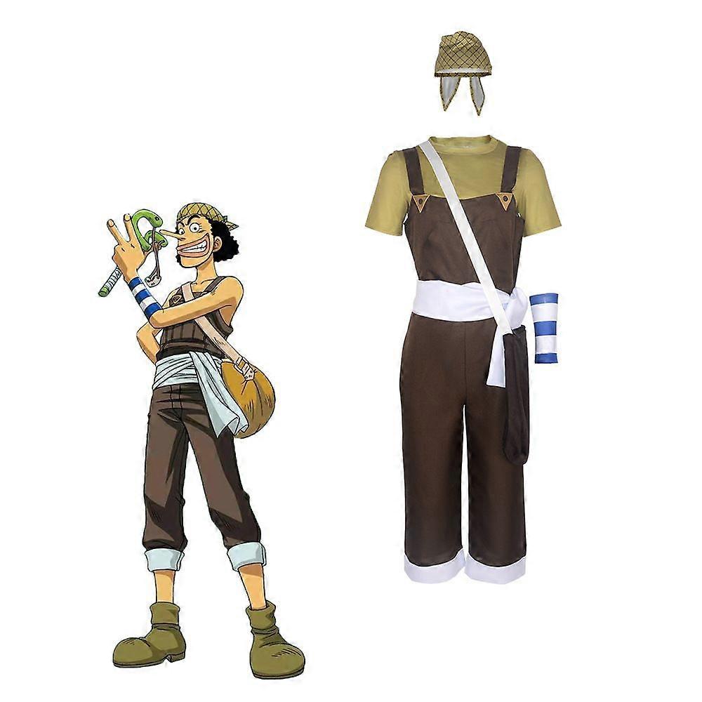 One Piece Usopp Cosplay Costume Mens Anime Outfit T-Shirt Overalls Hat Set for Halloween Carnival Comic Con Stage Performance