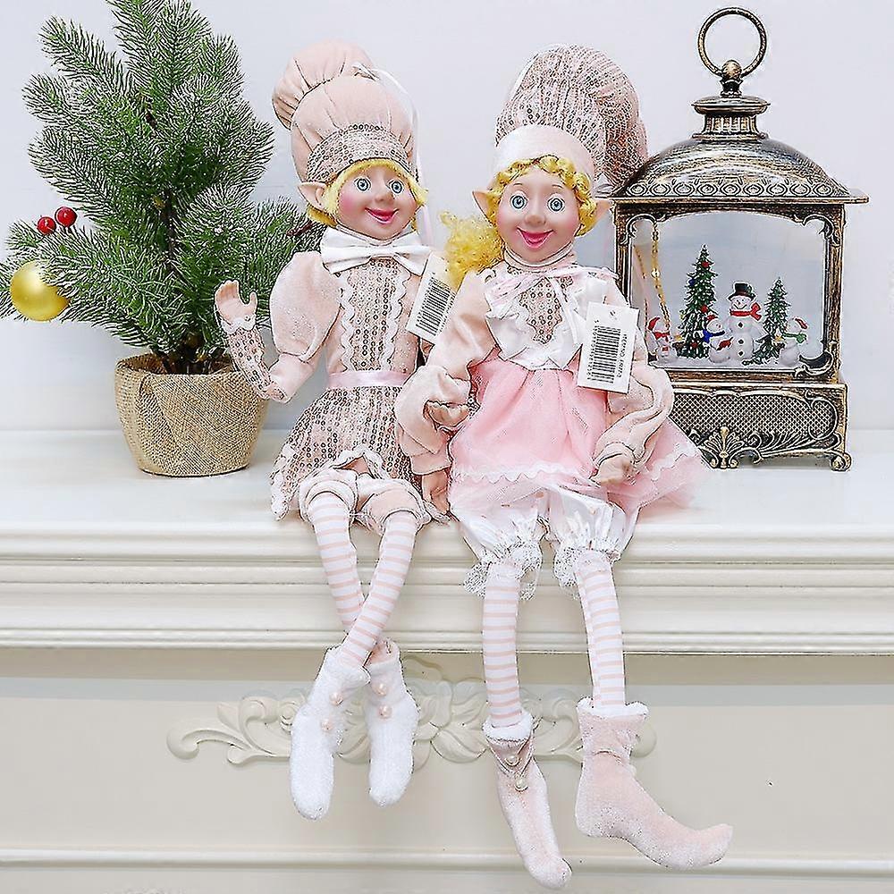 One Pair Christmas Elves Plush Elf Doll Xmas Decoration Sittingtoys Navidad New Year Gifts Kids Tree Hanging Ornaments