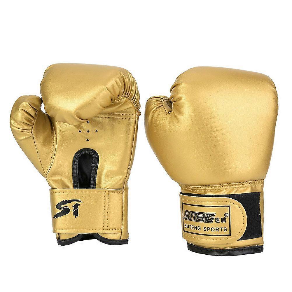 One Pair PU Leather Children Boxing Gloves Kids Sandbag Punching Sparring Training Mitts (Gold)