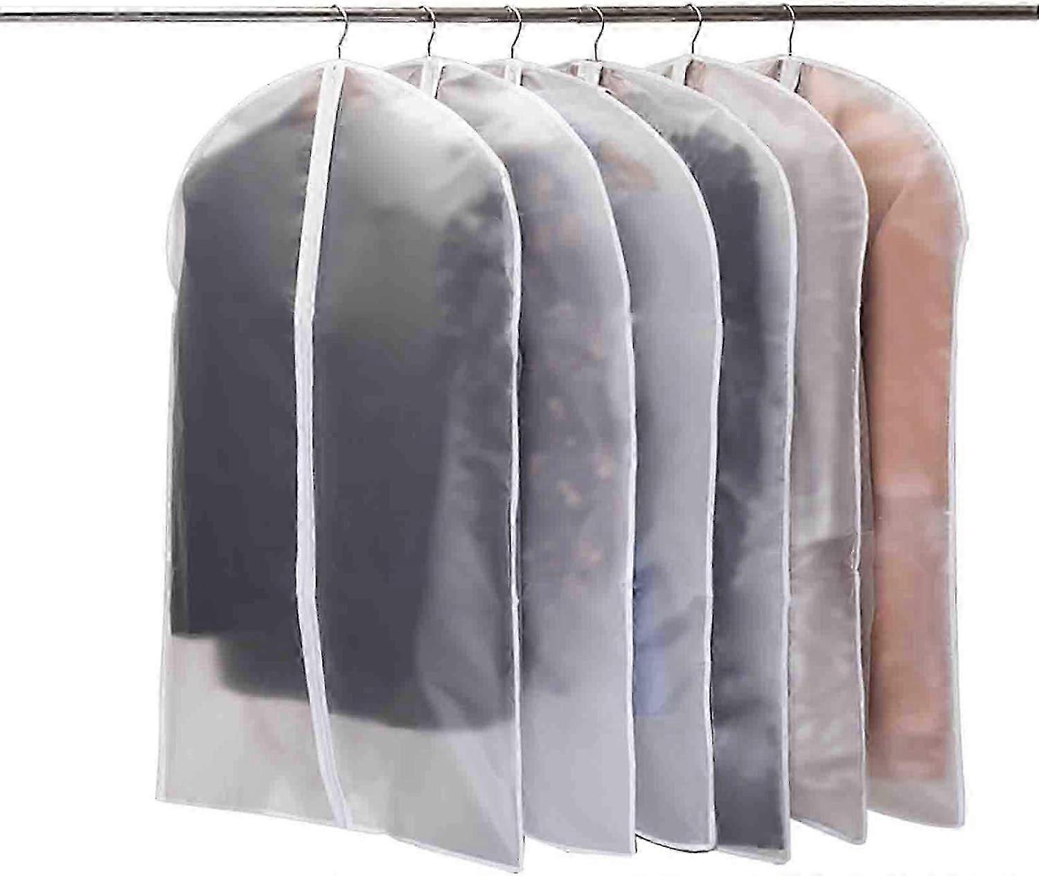 6 Pack Moth Proof Clothes Covers with Zipper for Wardrobe Storage - 60 x 100cm (White Zipper)