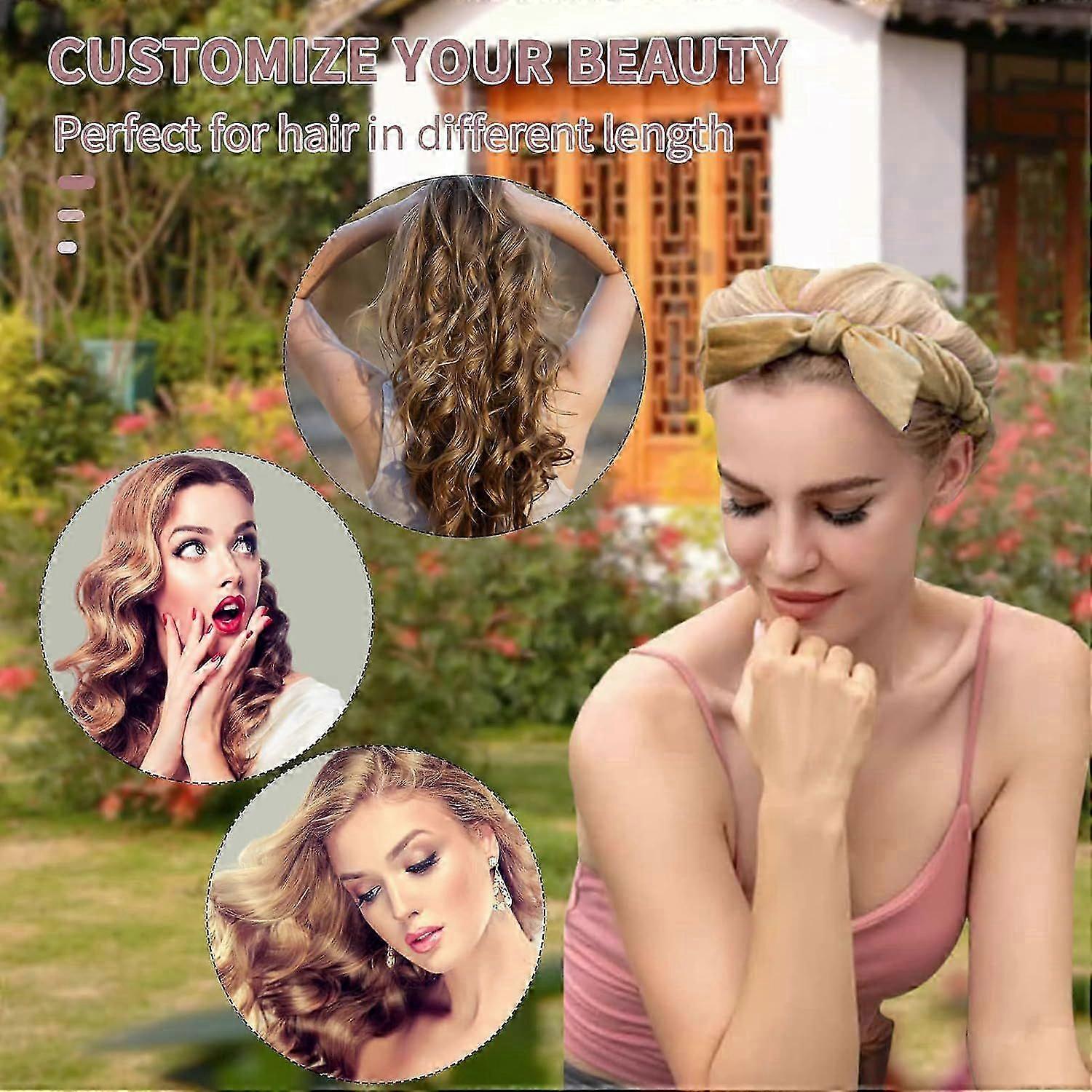 UPGRADED MATERIAL: Our overnight heatless curls headband is made of soft velour, which is not easy to deform, has no chemical smell, and is softer and more flexible. Our hair curler headbands are stuffed with cotton filling to provide you with an instant cushion as you sleep! This headband is perfect for creating heatless curls, heatless waves, and using as heatless curlers. Plus, you won't hear any "crunching" sound when you rest your head on the pillow.FOR ALL HAIR TYPE: Whether you have coarse or fine hair, you can get a nice, soft curl with this satin heatless curling set. No more getting up early and spending extra time getting your hair done. Now with the heatless curlers headband, or heatless curling rod headband, you can easily achieve beautiful curls without any heat damage to your hair. This is a great alternative to traditional hair curlers that require heat, allowing you to style your hair without any damage.LONG-LASTING VOLUME: Great for fine, medium,curly, wavy and straight hair, you can create the perfect classic look without damaging your hair with hot tools. These heatless curlers, including the heatless curlers headband, are also great for creating volume at the roots when used on damp hair. With these hair curlers for long hair, you can achieve the volume and curls you want without any damage, and the best part is that they last for hours! So you can have a full day of beautiful.EASY TO USE: 1. While your hair is slightly damp, place the heatless hair curlers, such as the heatless curls headband, over your head like a headband, using the clip to hold it in place. 2. Twist sections of hair around the heatless hair curlers, adding a little more to each section as you go, and tie off the sections at the bottom with the scrunchies. These hair curlers no heat needed are easy to use and perfect for those who want a hassle-free way to achieve stunning curls.THE PERFECT GIFT CHOICE: This heatless curlers headband, along with other hair curlers no heat needed, is easy to use and comfortable. It is the perfect gift for any occasion,Christmas, Valentine's Day, and Mother's Day. Give the gift of beautiful, heatless curls with this high-quality beauty sleep curler.