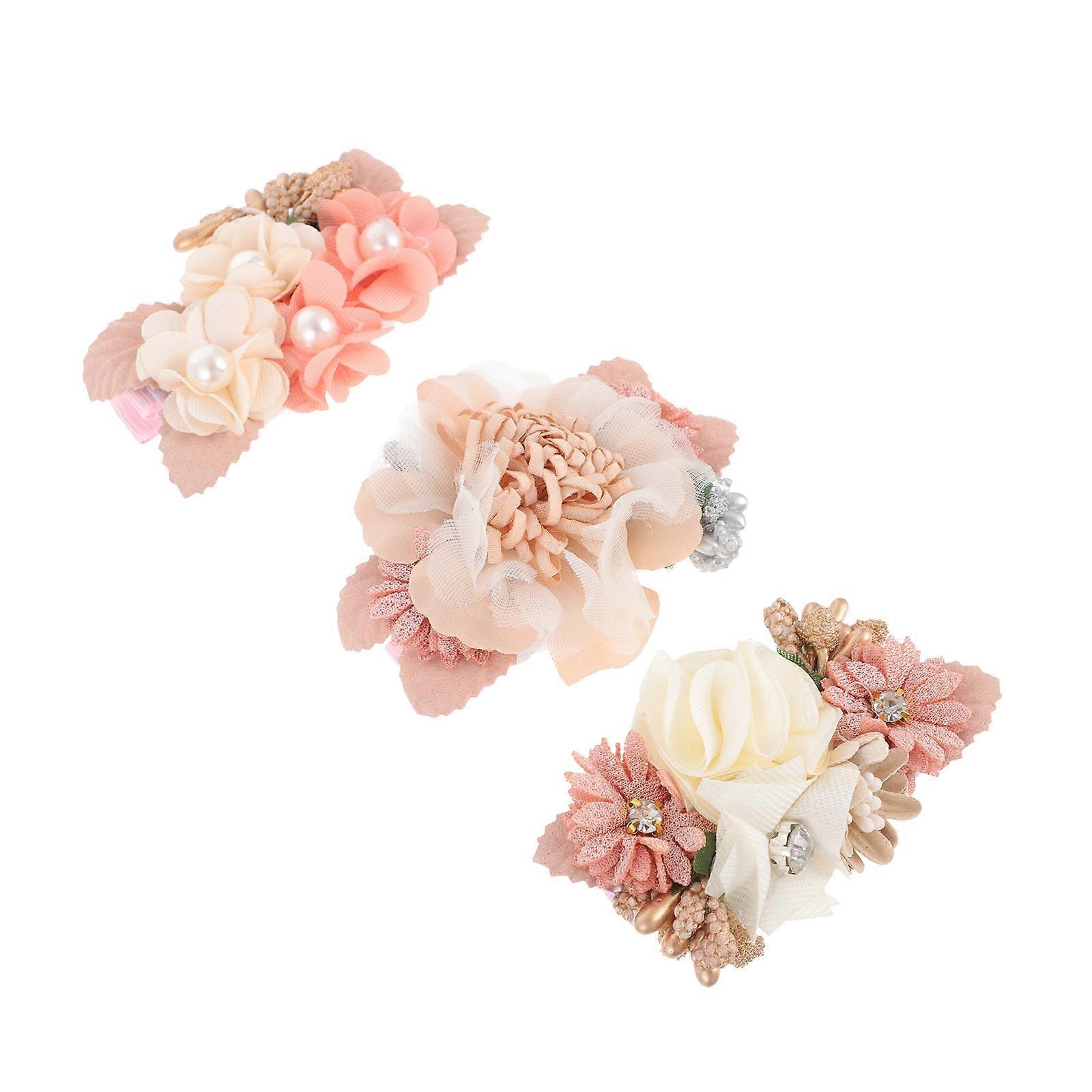 Beautiful Floral Hair Clips for Children with Strong Fabric Petals and Assorted Colors 3pcs