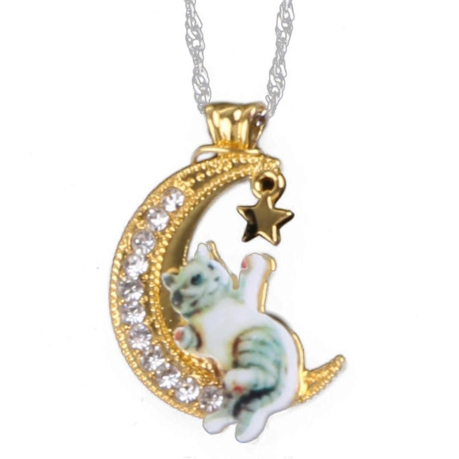 Crescent Moon Cat Pendant Cute Necklace Charm For Girl Halloween Party Jewelry