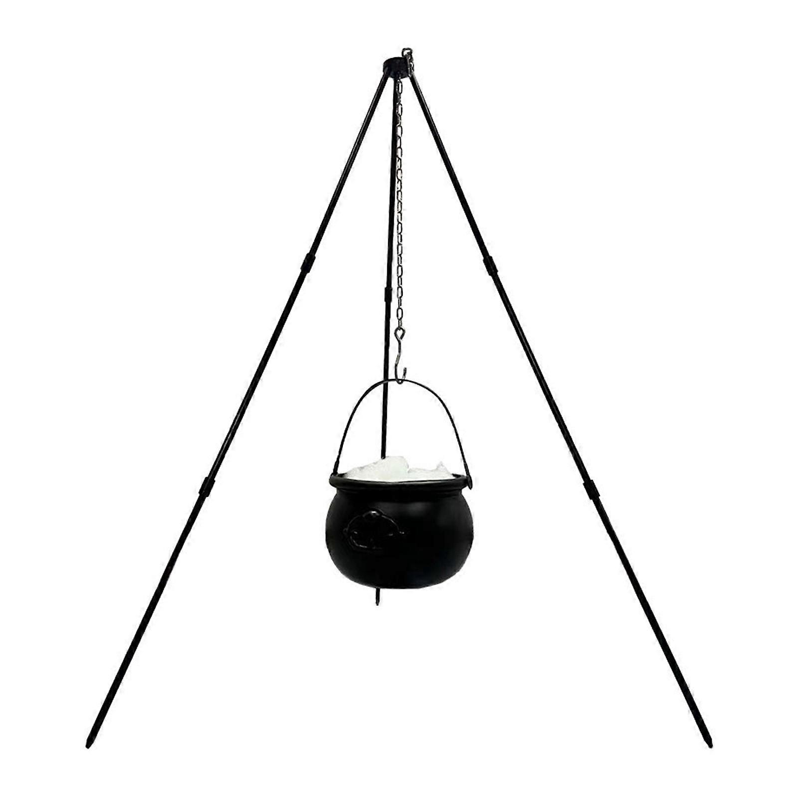 Large Witches Cauldron on Tripod Decoration Outdoor Glowing Witch Soup Pot with Light Plastic Black Candy Bucket for Halloween Party