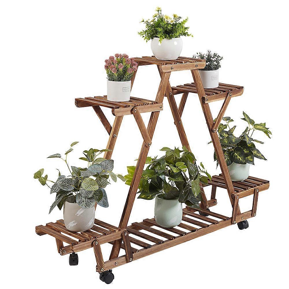 Triangular Plant Shelf 6 Potted Wood Holder Flower Stand Plant Stands