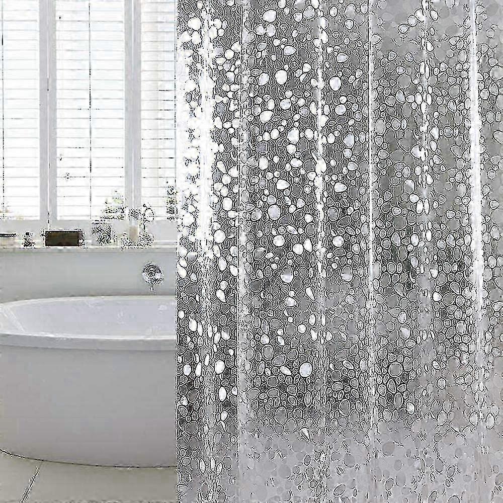 Quality: 0.2mm thick compared to other 0.15mm shower curtains is much higher quality. Our shower curtain is made of environmentally friendly EVA material, non-toxic and odorless, offers you a healthy shower room. It is heat-resistant and, despite the heating, also undeformed and also has better flexibility than normal shower curtains made of PEVA. Property: Because of the humid and warm environment in the bathroom, mold increases particularly quickly. Do not worry Thanks to the high-quality EVA plastic, this shower curtain provides optimal waterproof, anti-mold and quick-drying properties. Cleaning: This shower curtain is very easy to clean. You only need to regularly wipe the surface of the shower curtain with a damp cloth or sponge and then let it air dry. Thanks to the high-quality EVA material, it is very easy to remove the shampoo and shower gel residues Design: This shower curtain is equipped with 12 rustproof metal eyelets and corresponding plastic rings, so it is suitable for straight or curved shower bars and does not make any scratching noise. 3 magnets at the bottom make folding easier. Modern 3d design, semi-transparent cobblestone pattern keep your privacy well. It will be a great choice for families or hotels. Package content: - 1 x shower curtain - 12 x shower curtain rings (diameter: 28mm) Note: - Regularly wipe the surface of the shower curtain with a damp cloth or sponge and then let it air dry. - Thanks to the high-quality material, it is very easy to remove the shampoo and shower gel residues. - Size: 180 x 200cm - Dense: 0.2 mm - Net weight: 714 g - Color: semi-transparent Note: Due to the light and screen setting difference, the item's color may be slightly different from the pictures. Please allow slight dimension difference due to different manual measurement.