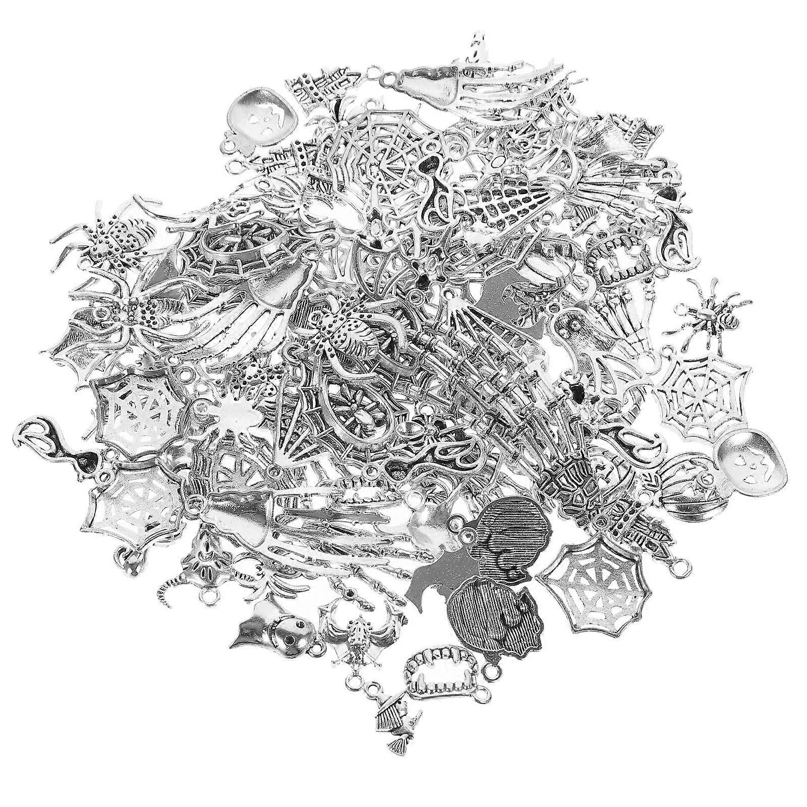 Spooky Charms Jewelry Making Halloween Alloy Charm 100Pcs Gothic Style 1.8x4CM