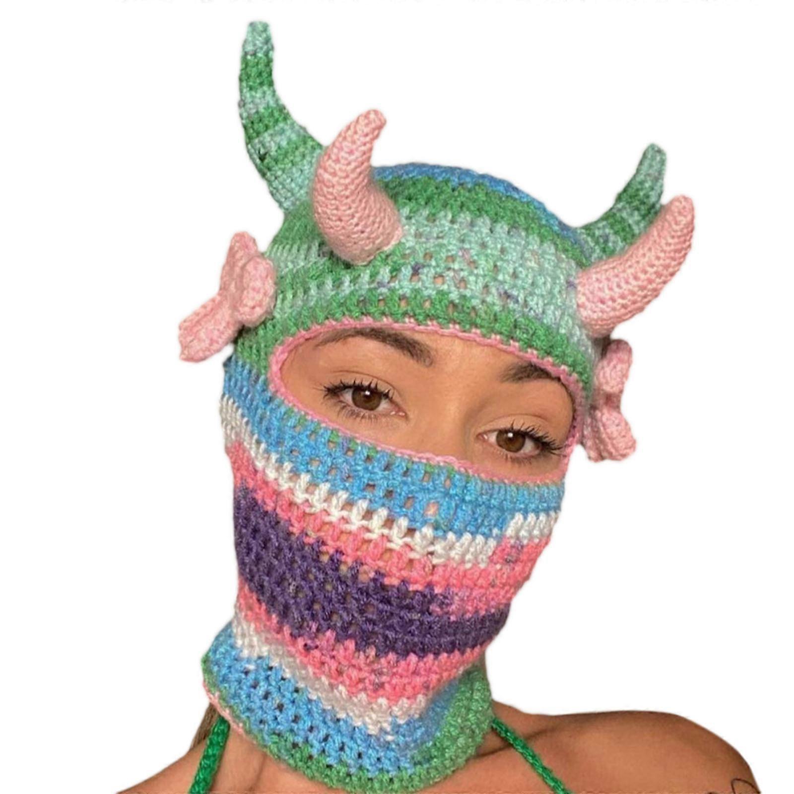 Spooky Knitted Beanie Hat Teens Cap Halloween Unique Horn Balaclava Hat Costume Party Cosplay Horn Party Hats
