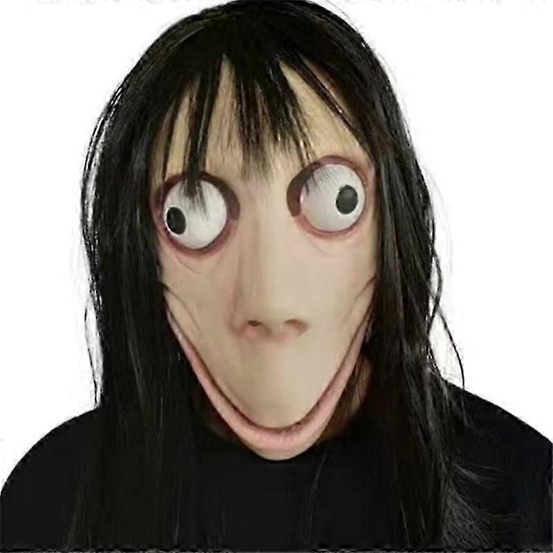 Creepy Latex Ghost Woman Mask with Wig, Scary Halloween Cosplay Full Head Mask