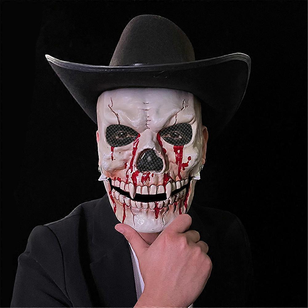 Creepy Skull Full Head Mask Halloween Horror Movable Jaw White Skeleton Cosplay Party Fancy Dress Up Costume Props For Adults