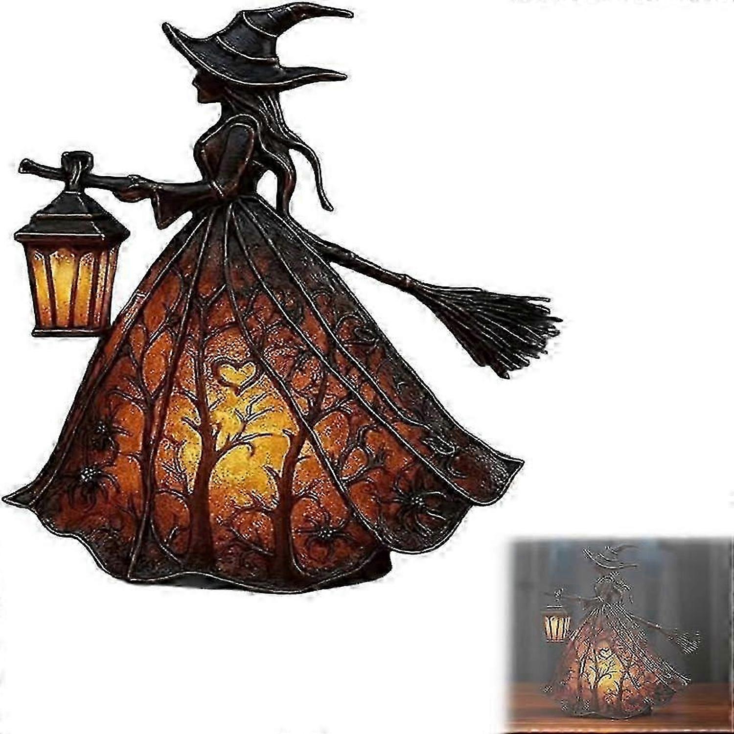 Spooky Witch Standing Lamp with Lantern Halloween Gothic Decor for Home Office Table