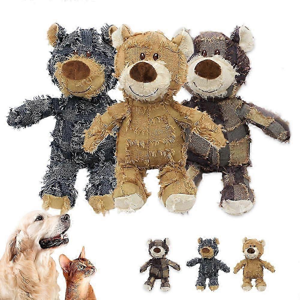 Indestructible Robust Bear, Aggressive Chewer Squeaky Toys, Interactive Toys Dog for Heavy Chewers (Blue, Purple, Brown)