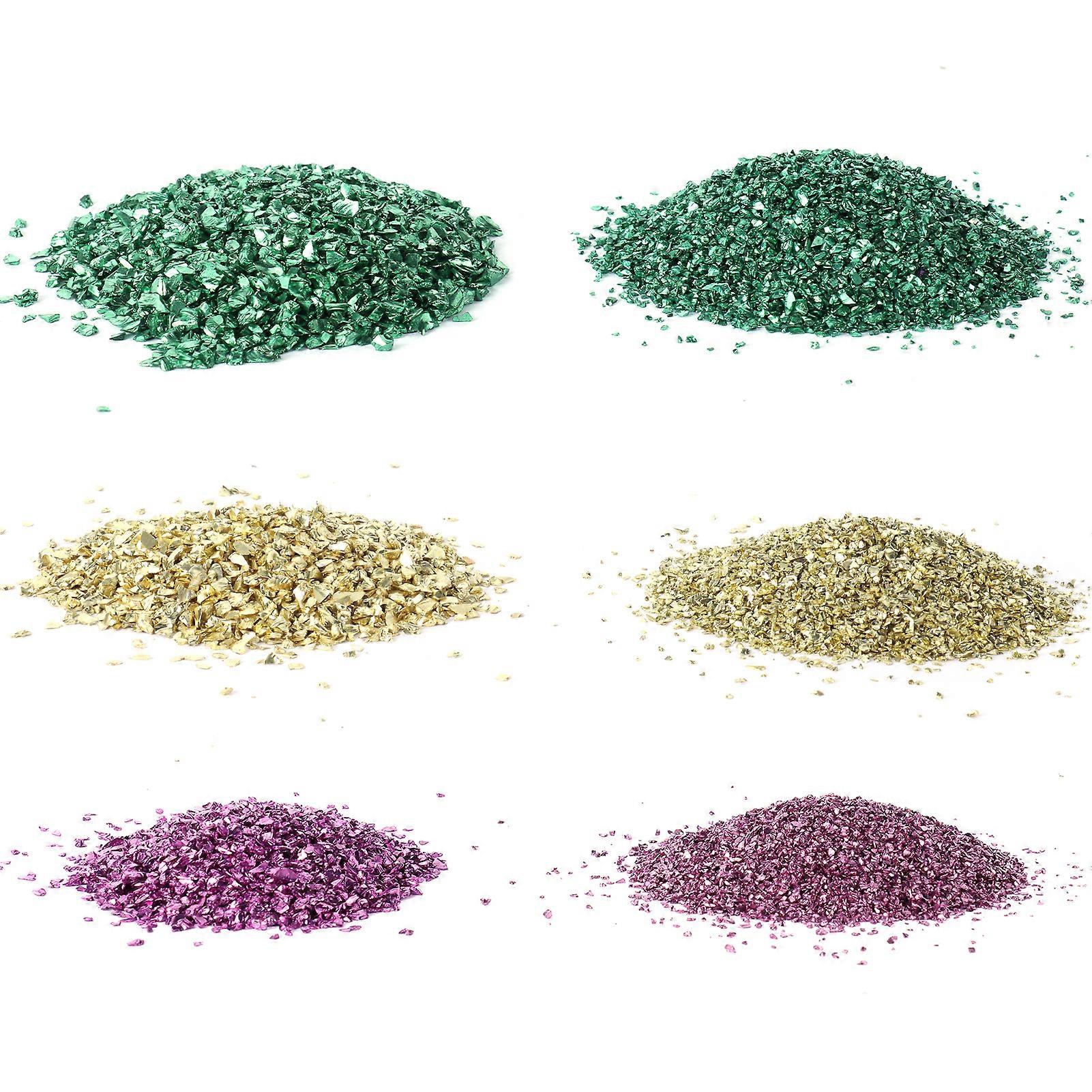 1、Glass material, durable and non‑toxic; Metallic colored small glass chips with shining effect, not easy to fade. 2、Heavy enough to settle to the bottom of the resin and weigh just right to stay where they are placed. 3、Great gift to give to family, friends, and co‑workers. You can also strengthen your relationship by making DIY crafts with your kids or parents. 4、Glass sequins are suitable for nail decoration, filling resin products, artwork, vase fillers, epoxy resin decorative edges, etc. 5、You can choose your favorite color according to your preferences, bringing you more fun and making your craft work more eye‑catching. 2 x Bag of Crushed Glass Filler (Light Gold)2 x Bag of Crushed Glass Filler (Green)2 x Bag of Crushed Glass Filler (Light Purple) Item Type: Crushed Glass Filler Material: Glass Use: DIY filling decoration material, you can use to DIY various crafts decoration, let your DIY become more colorfulColor: Light Gold, Green, Light PurpleQuantity: Large and small bag for each color