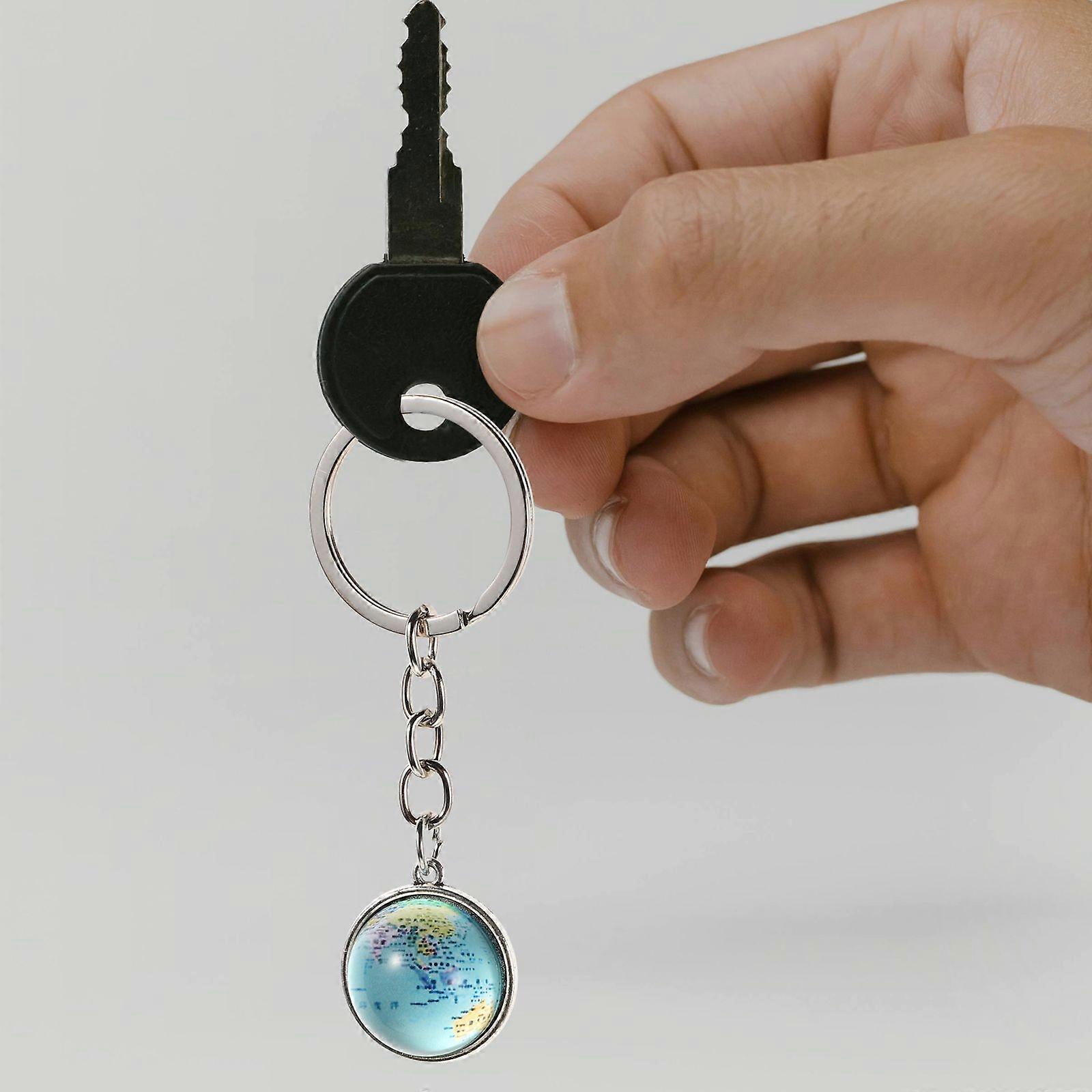 World Map Globe Keychain Creative Planet Key Chain Portable Metal 3D Pendant Earth Key Ring Bag Hanging Ornament for Men Women