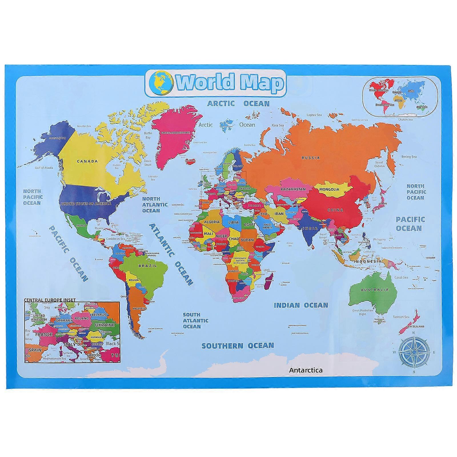 World Map Poster – Educational Wall Decor for Preschool, Nursery & Homeschooling with Rounded Corners and Random Style Design