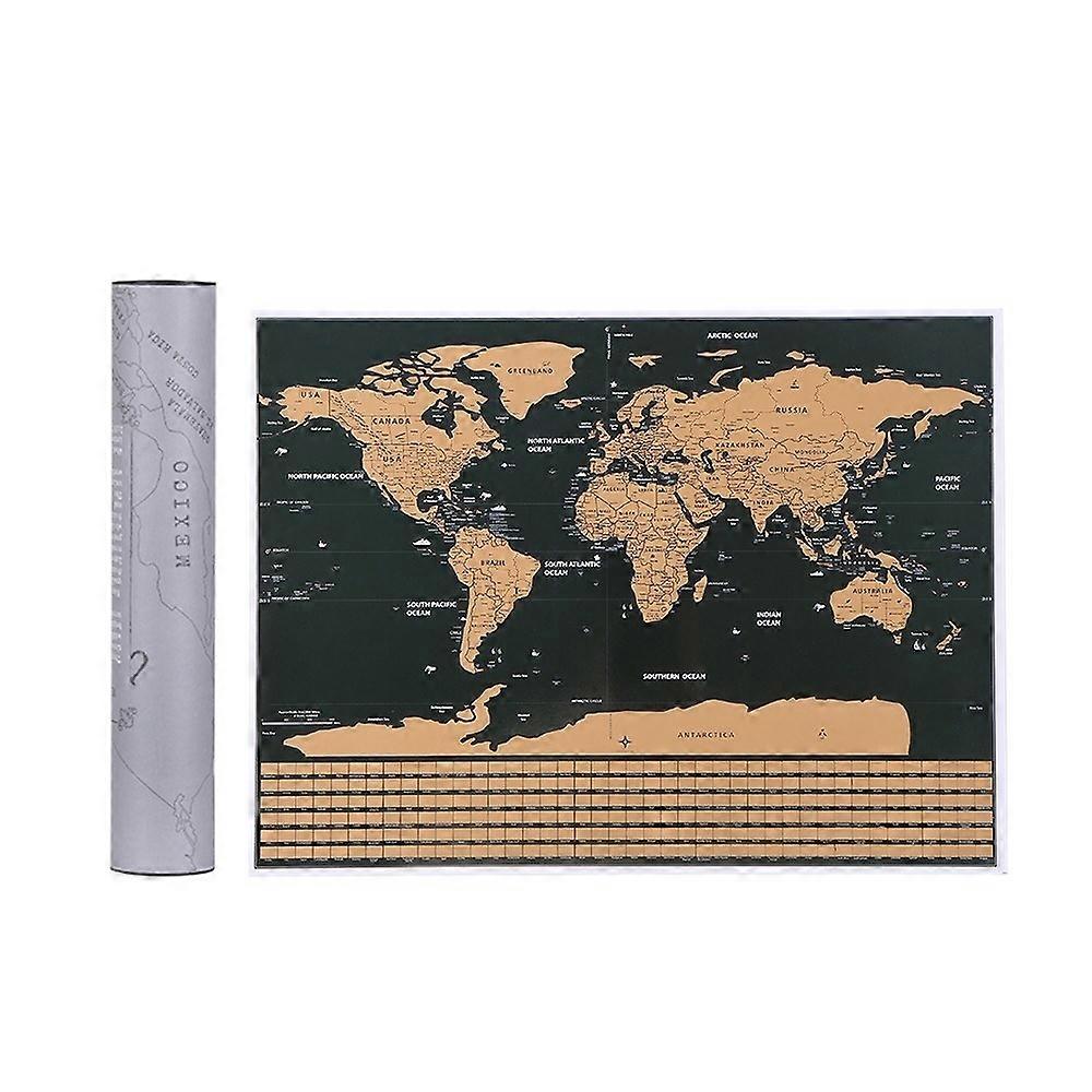 Scratch off World Travel Map Black Background and Copper Foil Cover with National Flag