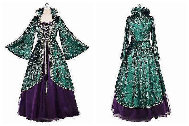 Medieval Green Velvet Dress Witch Cosplay Costume Robes for Women Halloween